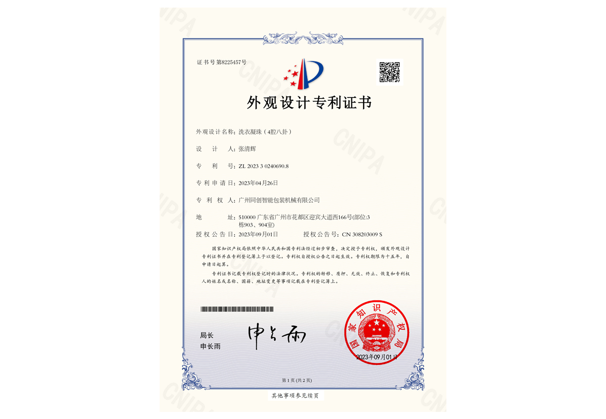 【洗衣凝珠(4腔八卦)】外觀設(shè)計(jì)專利證書